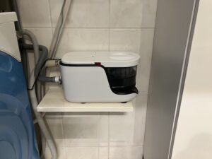 Das Gerät hat mein Mann gekauft. Der arbeitet ja in dem Segment und bekommt da viel mehr mit als ich. Bei mir wäre das nie auf dem Radar aufgetaucht. Es wird auch keinerlei Werbung dafür gemacht. Dabei finde ich das Tool sehr praktisch. Es wird einfach zwischen Waschmaschine und Abfluss angeschlossen und mit Strom versorgt. Bei uns steckt es in der gleichen schaltbaren Steckdose wie die Waschmaschine. Damit kann beides nach Gebrauch wieder ausgeschaltet werden.