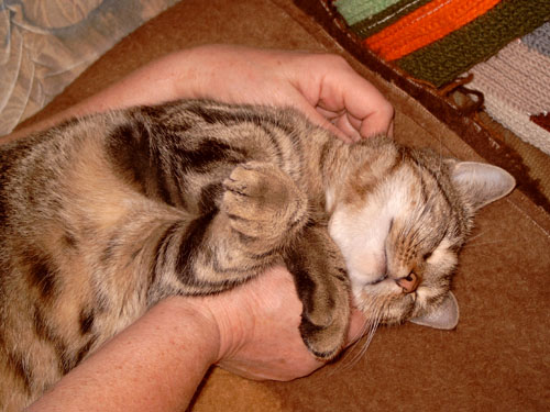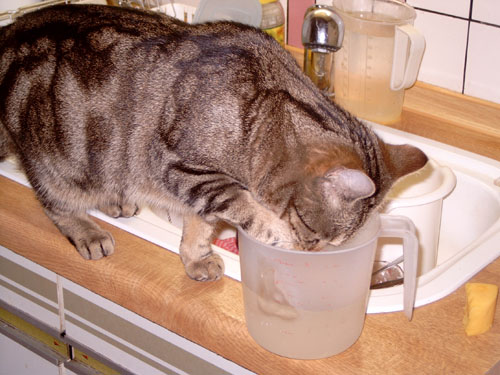Tochter von Floh. Geboren 2002. Sie liebte Wasser und Schnee und konnte ein richtiger kleiner Rabauke sein. Außerdem fraß sie alles was ihr vor die Nase kam.Die einzige schielende Katze die ich kenne.Sie starb im Sommer 2013 nach langer Krankheit.