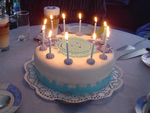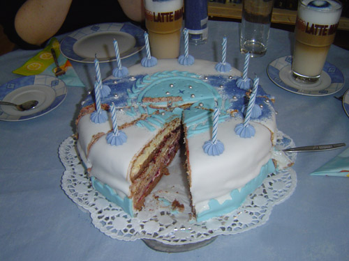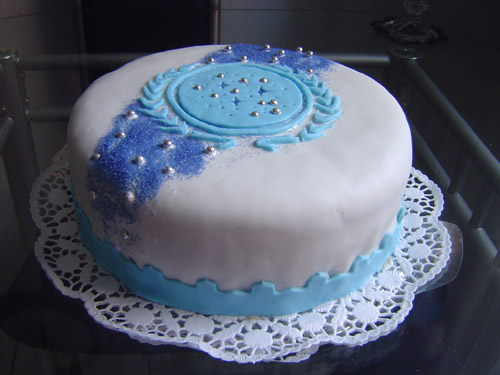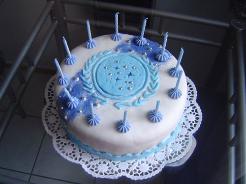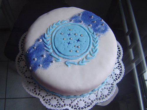 Zum 30. Geburtstag meines "Blauauges" habe ich mir gedacht, ich backe ihm eine ganz besondere Torte. So richtig professionell sollte sie aussehen und natürlich Star Trek zum Thema haben. Ich habe zuvor noch nie mit Rollfondant gearbeitet, aber so wie ich gelesen habe, konnte das nicht so schwer sein. War es auch nicht... ...am Ende enthielt die Torte 6 Tortenböden, zwei Sorten Buttercreme und ein ganzes Glas Preiselbeeren. Eingepackt und verziert mit Rollfondant, dekoriert mit blauem Zucker und Silberperlen.