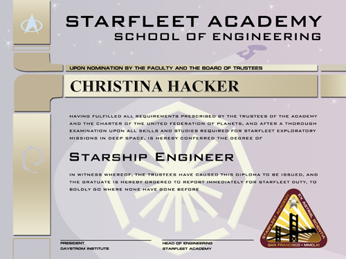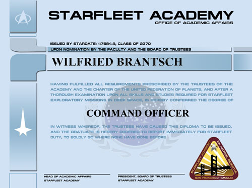 Sternenflotten Akademie Diplom als kommandierender Offizier.